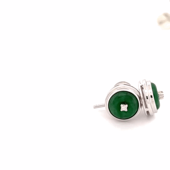 Jade Earring - Imperial Green Colored Oval Shaped Translucent Iced Jadeite Jade Cabochon mounted 18K White Gold Setting with Rounded Diamonds 0.804 cts